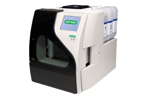 The D-10 instrument provides comprehensive, fully automated hemoglobin testing in a compact footprint. Combining diabetes and β-thalassemia testing on a single platform, the system offers simple, efficient operation for clinics, physician offices or clinical laboratories. Easy to use, the D-10 includes an interactive instrument training CD-ROM and multilingual operational support.