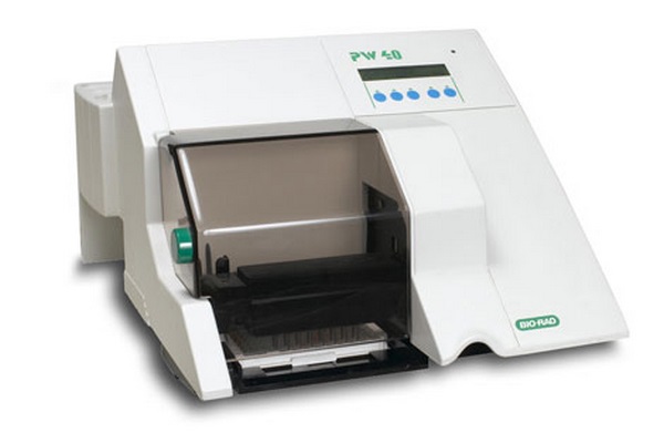 The PW 40 Microplate Washer is powerful, compact and programmable 8-channel and 2 x 8-channel microplate washer/aspirator, with built-in vacuum and dispensing pumps. It has been designed for use with 96-well flat, U- or V-bottom plates. Dispensing and aspiration head heights are user- adjustable, with vertical and horizontal needle positioning in the well (0.1 mm accuracy). Liquid level detectors on wash and waste bottles and vacuum sensors provide a consistent washing/aspiration process.